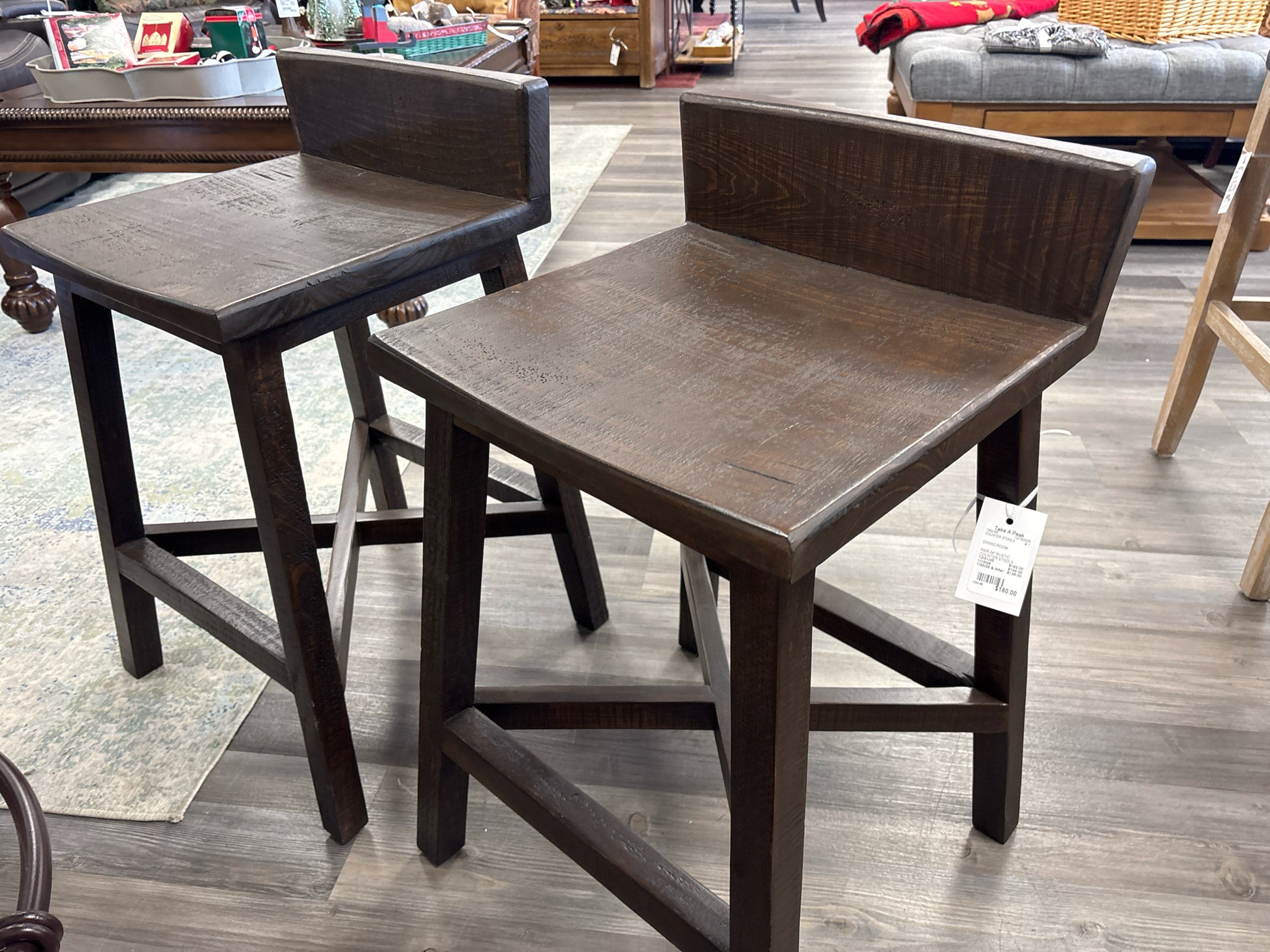 PAIR 24" RUSTIC COUNTER STOOLS